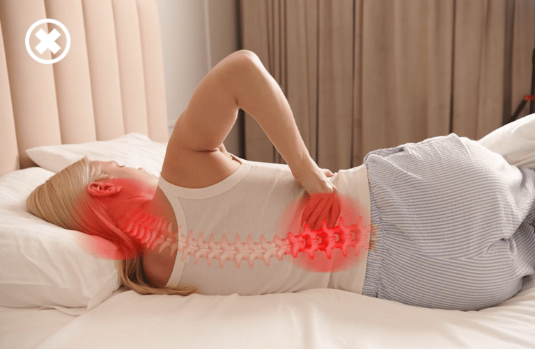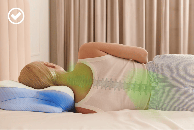 It starts with your old pillow forcing your spine out of alignment all night. As your head sinks and shifts, muscle tension builds from your neck down to your lower back.